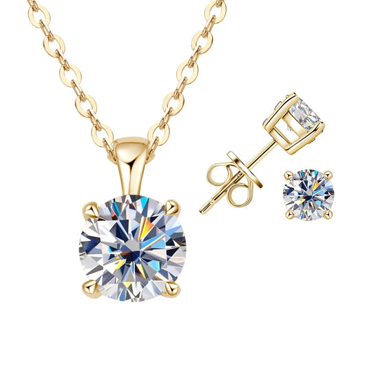 Moissanite Jewelry Set. Earrings - Pendant Necklace.