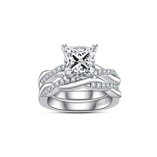 Princess Cut D Color Moissanite Engagement Ring Set 3.0 Carat.